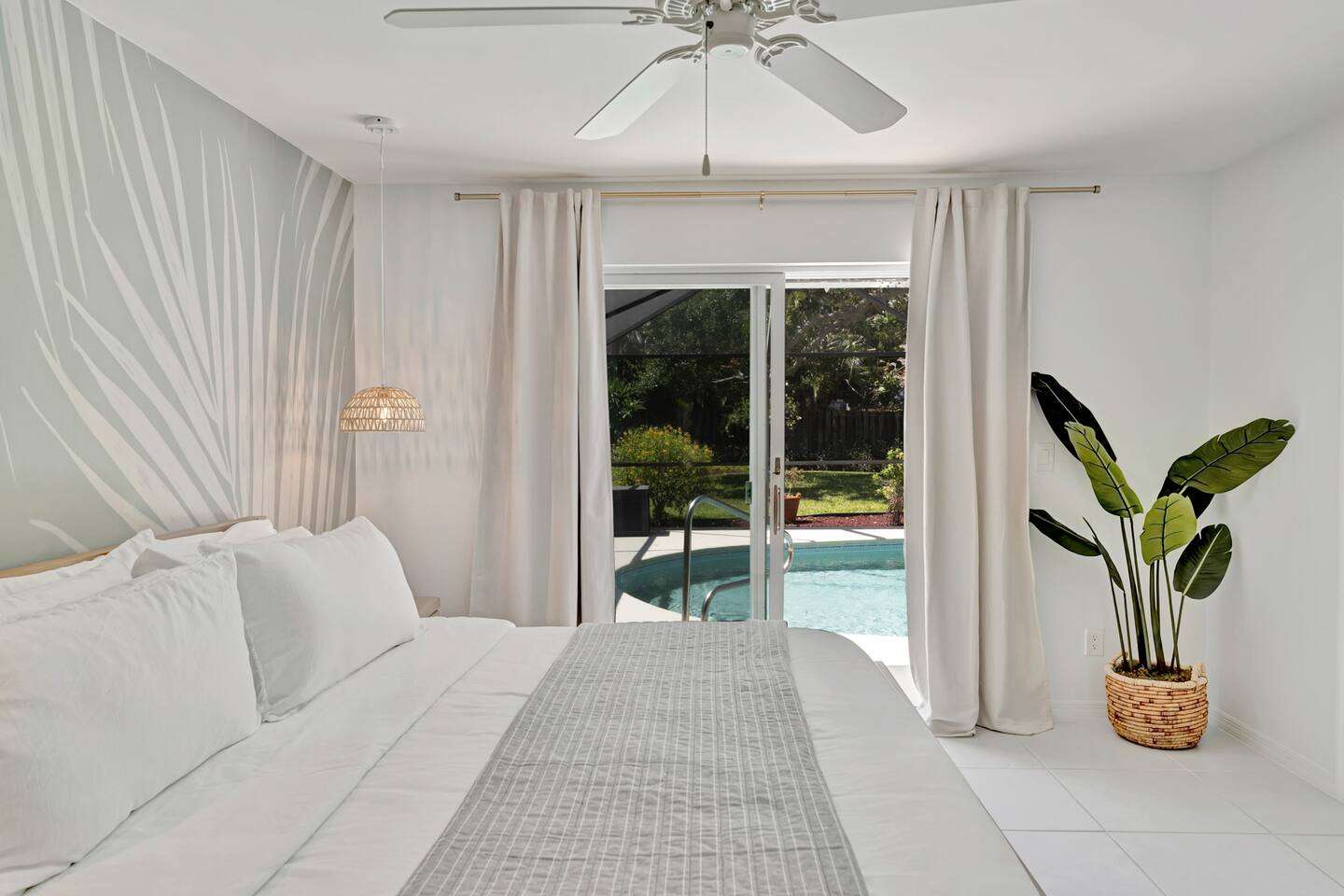 KEY INDOOR FEATURES: ☀ Spacious 2,500 sq ft home ☀ 1 minute walk to secluded, white sand beach ☀ Large living room with sectional sofa ☀ Family room w/ 50” 4K TV + Apple TV ☀ 4 beautifully designed bedrooms, six beds sleep up to 8 guests comfortably ☀ Game room in garage with ping-pong, tabletop basketball, and foosball ☀ Desk workspace with fast wifi (522mbps ↓ & 23mbps ↑) ☀ Two 4Moms pack 'n' play travel cribs KEY OUTDOOR FEATURES: ☀ Screened in heated, saltwater pool ☀ Multiple patio sitting areas ☀ 2 beach cruiser bikes ☀ Multiple pedal scooters ☀ Beach chairs, beach towels, umbrellas, toys, and wagon ☀ Weber BBQ ☀ Large circular driveway ☀ Oversized 2 car garage ☀ Spacious backyard with over a third of an acre of greenspace A Few Kind Words From Our Past Guests: "Unbeatable location in a beautiful part of Vero. Even better… steps to a pristine & private beach...all that you would need for a wonderful vacation." - Meghan "The house is beautiful and well stocked with everything you need to enjoy your stay. Super short walk to the beach which was private and gorgeous." - Scott "This beach house is a few steps from the beach… close enough to hear the waves while sitting in the backyard. So cute, comfortable, and clean." - Amy