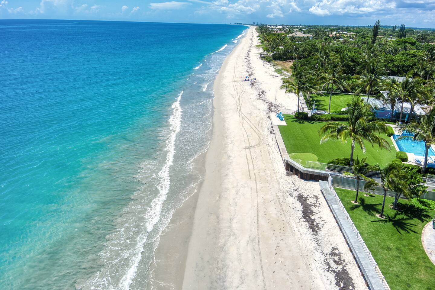East of A1A and steps away from a secluded private, white sand beach, the quiet street extends to the ocean and is lined by mature palms for a serene, tropical atmosphere.